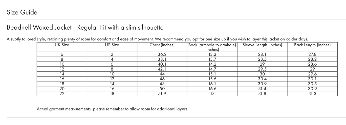 Cut for a regular fit and a feminine silhouette we recommend that you check the size guide before selecting your size, particularly if you wish to layer it up in cold weather.