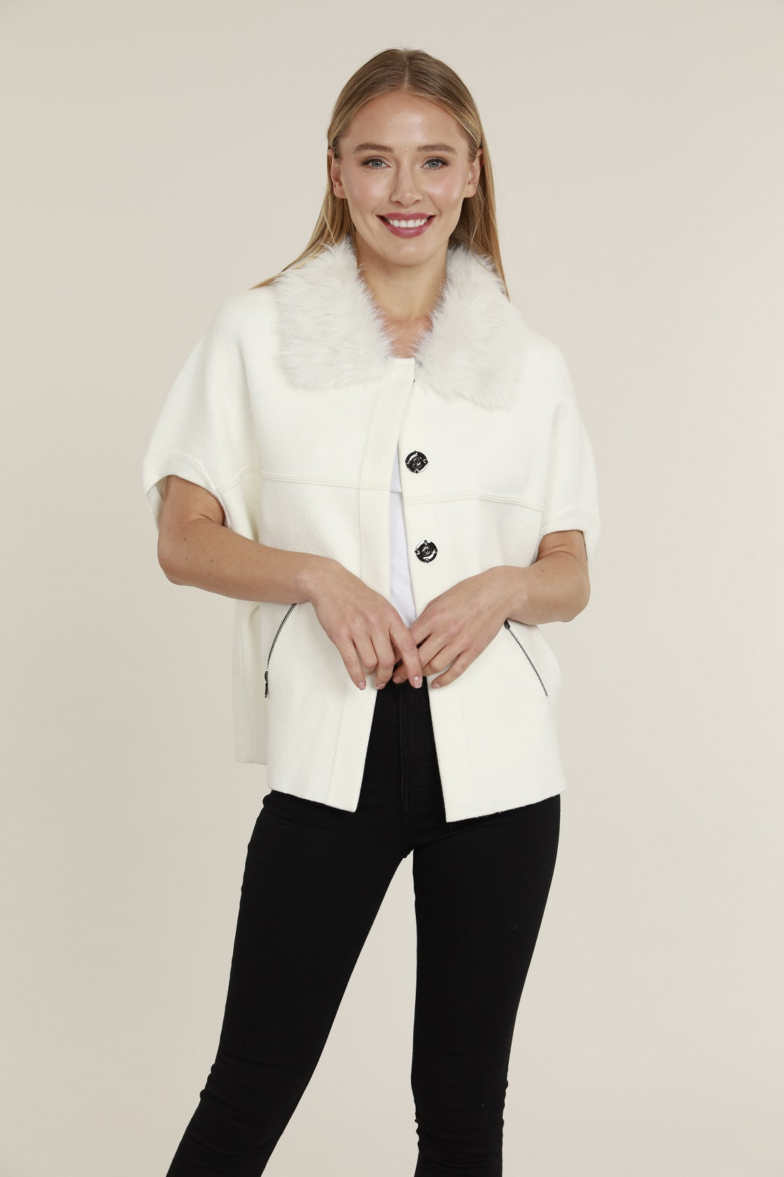 Dolce Cabo Faux Fur Cardigan - Ivory