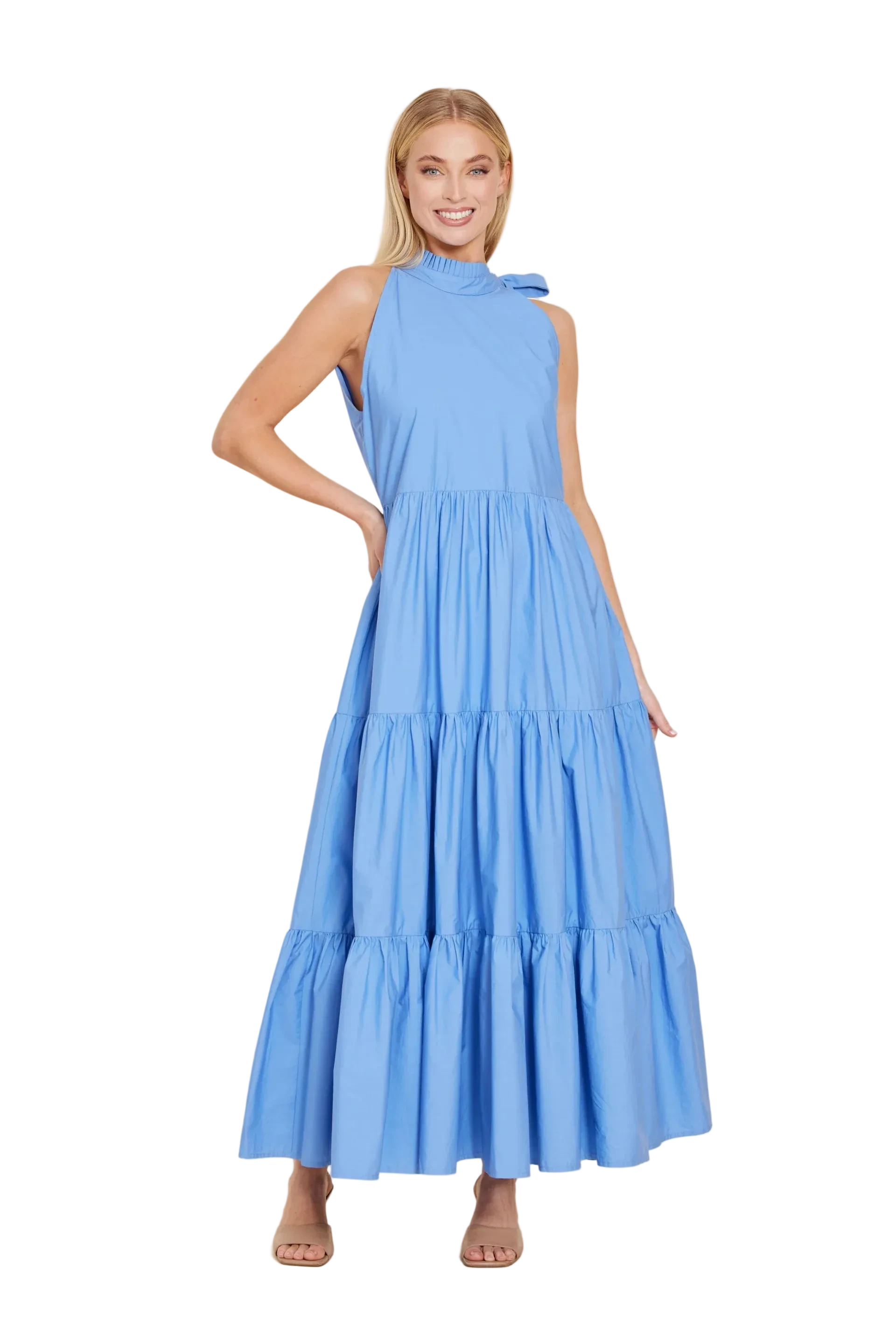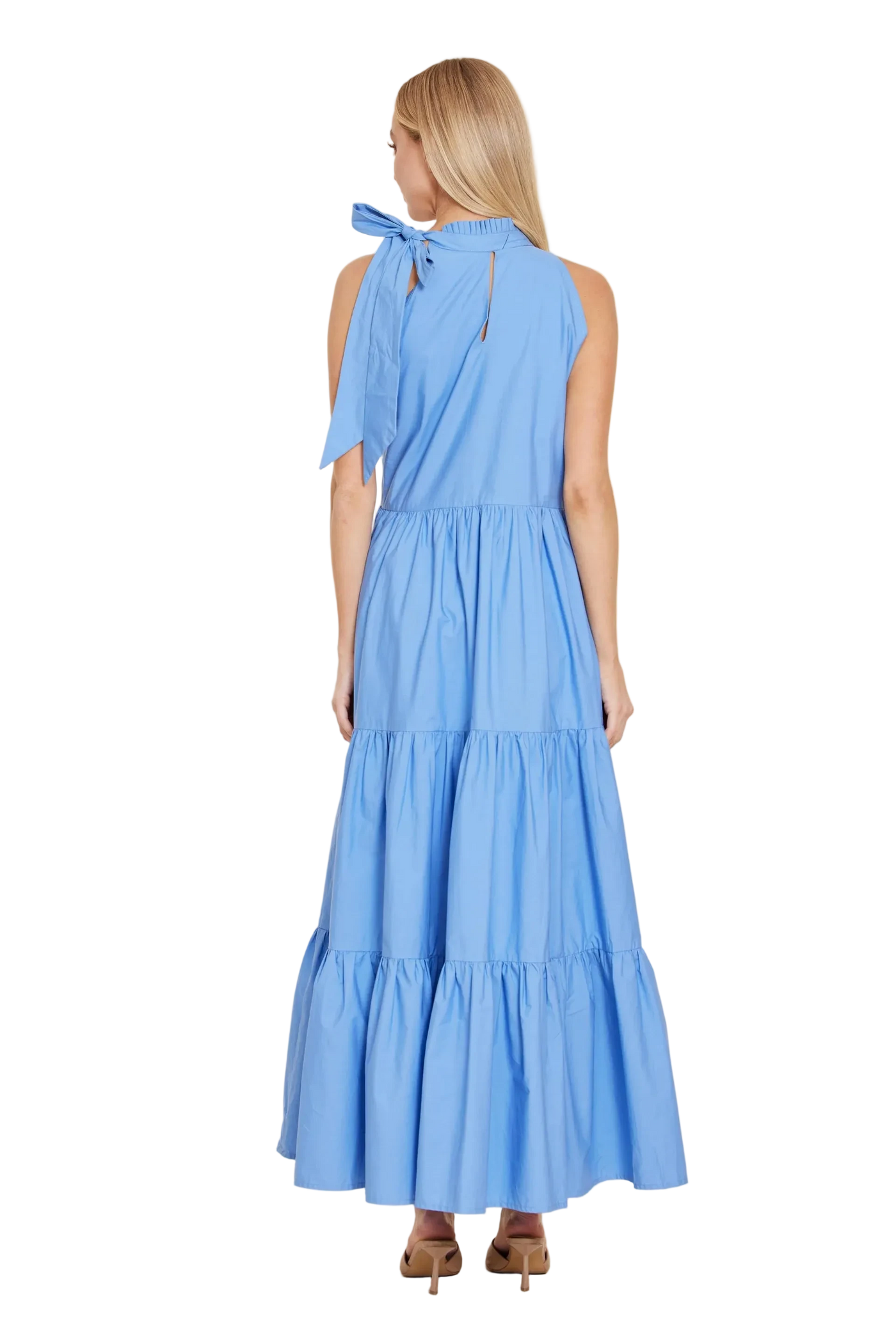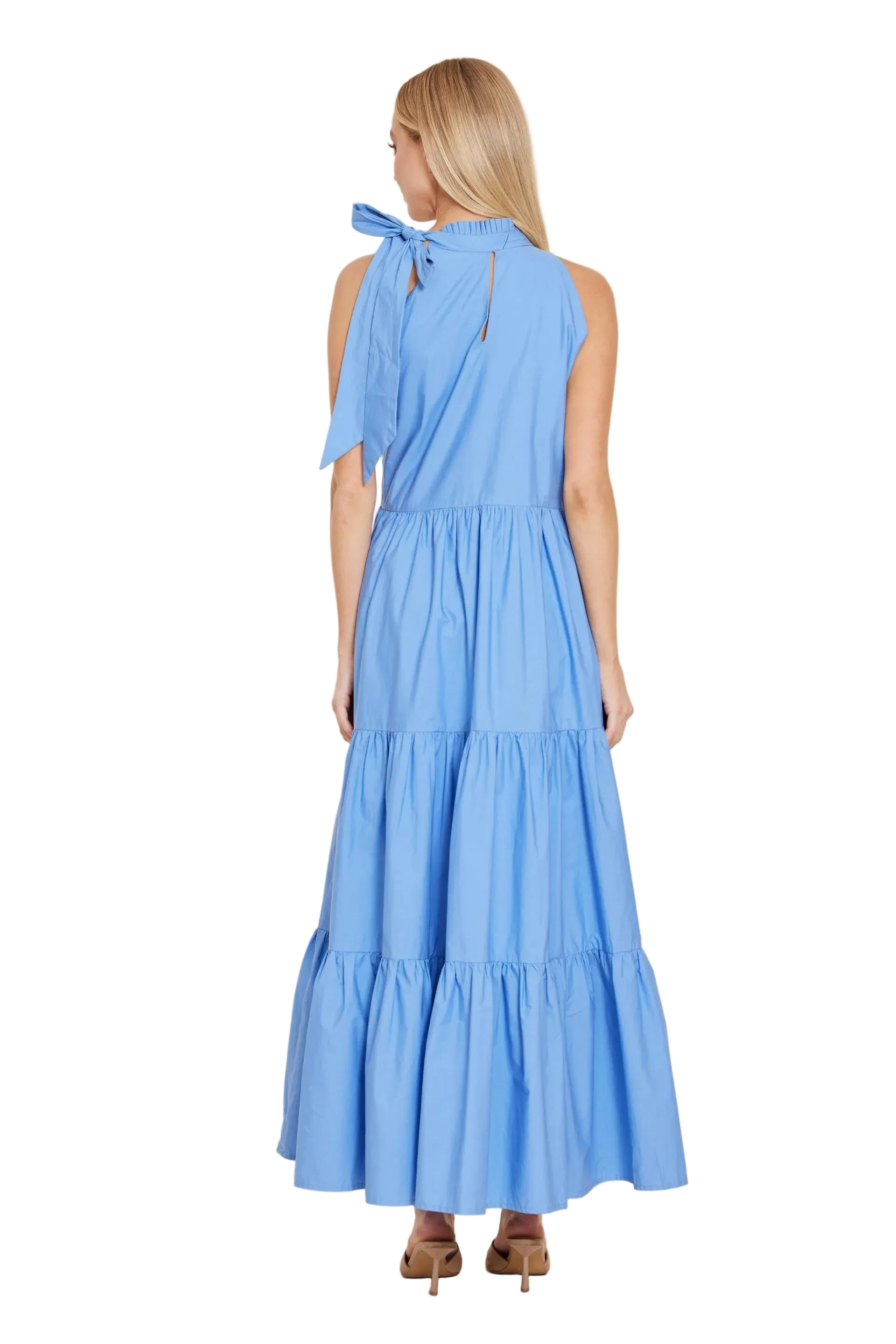 Dolce Cabo Poplin Tie Neck Tiered Maxi Dress - Blue