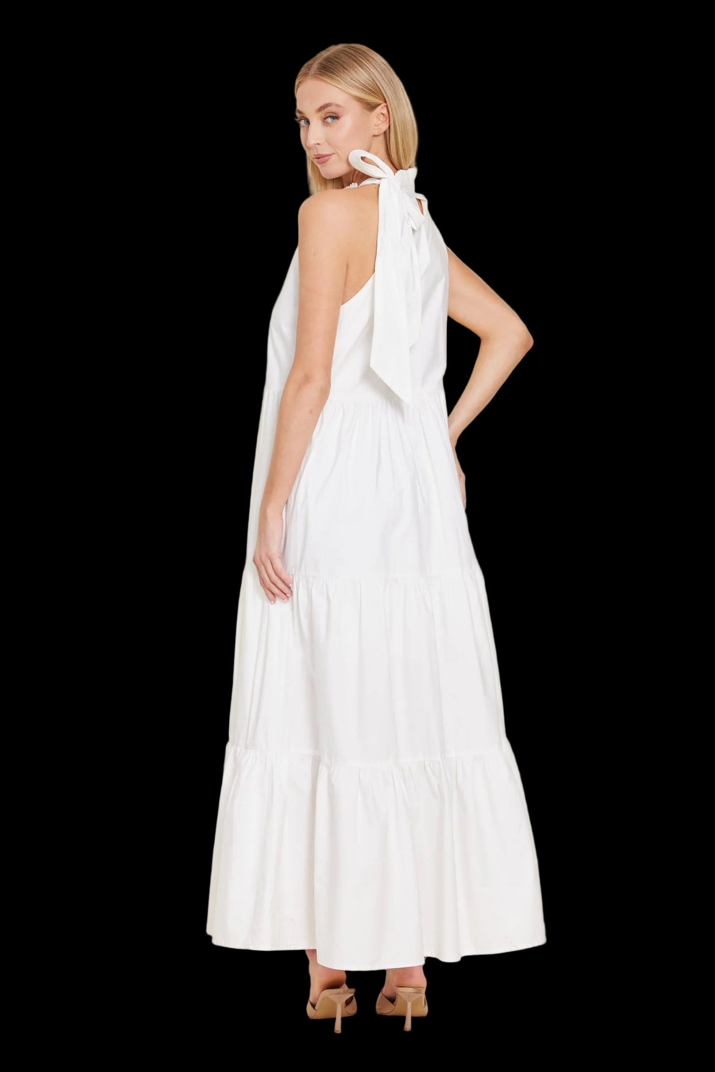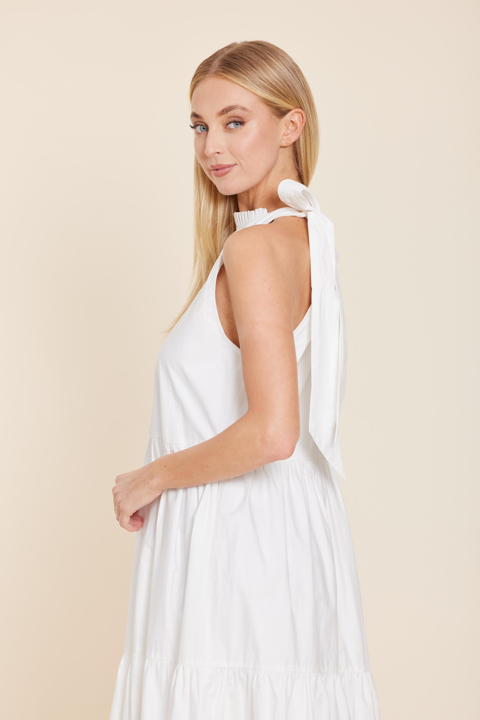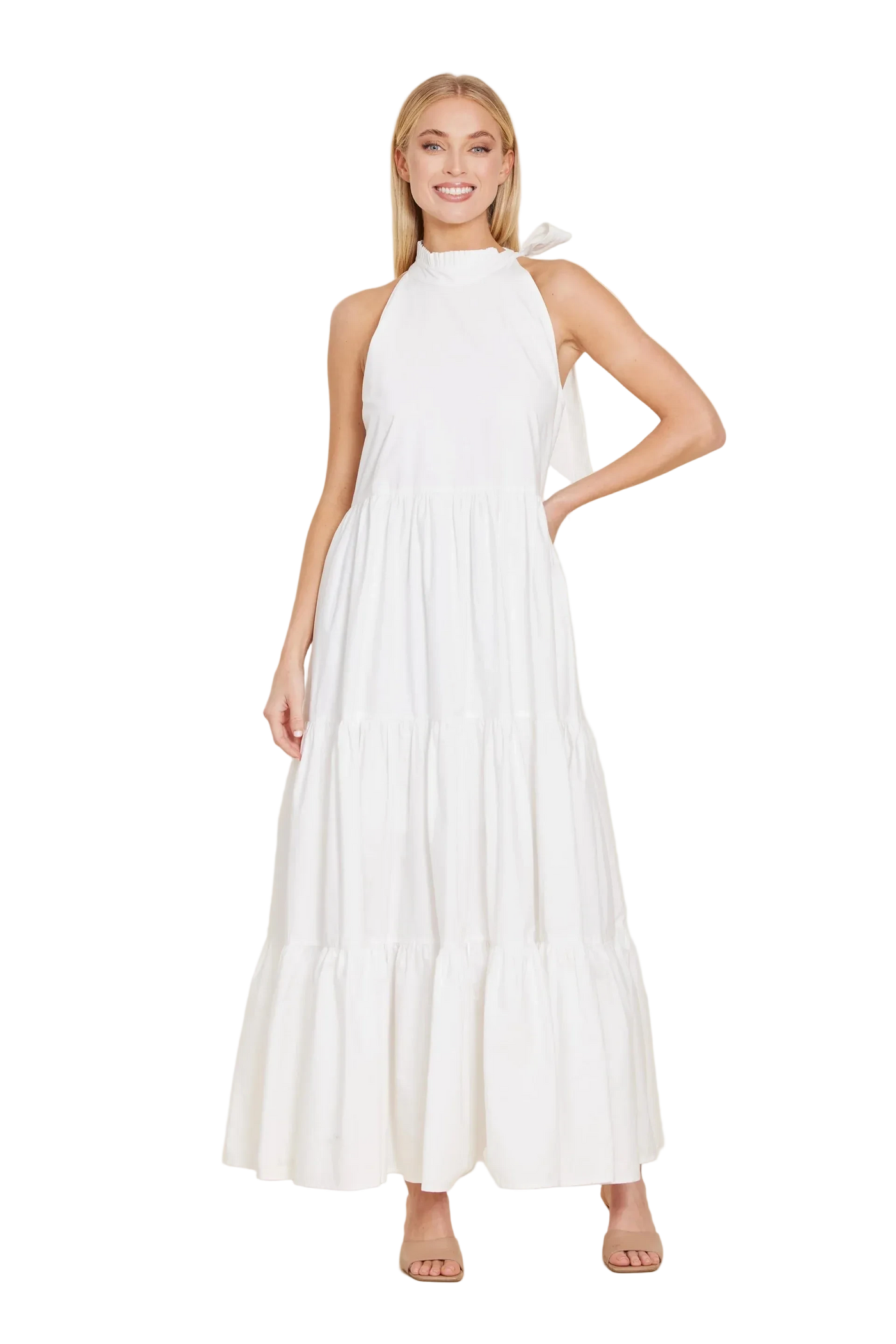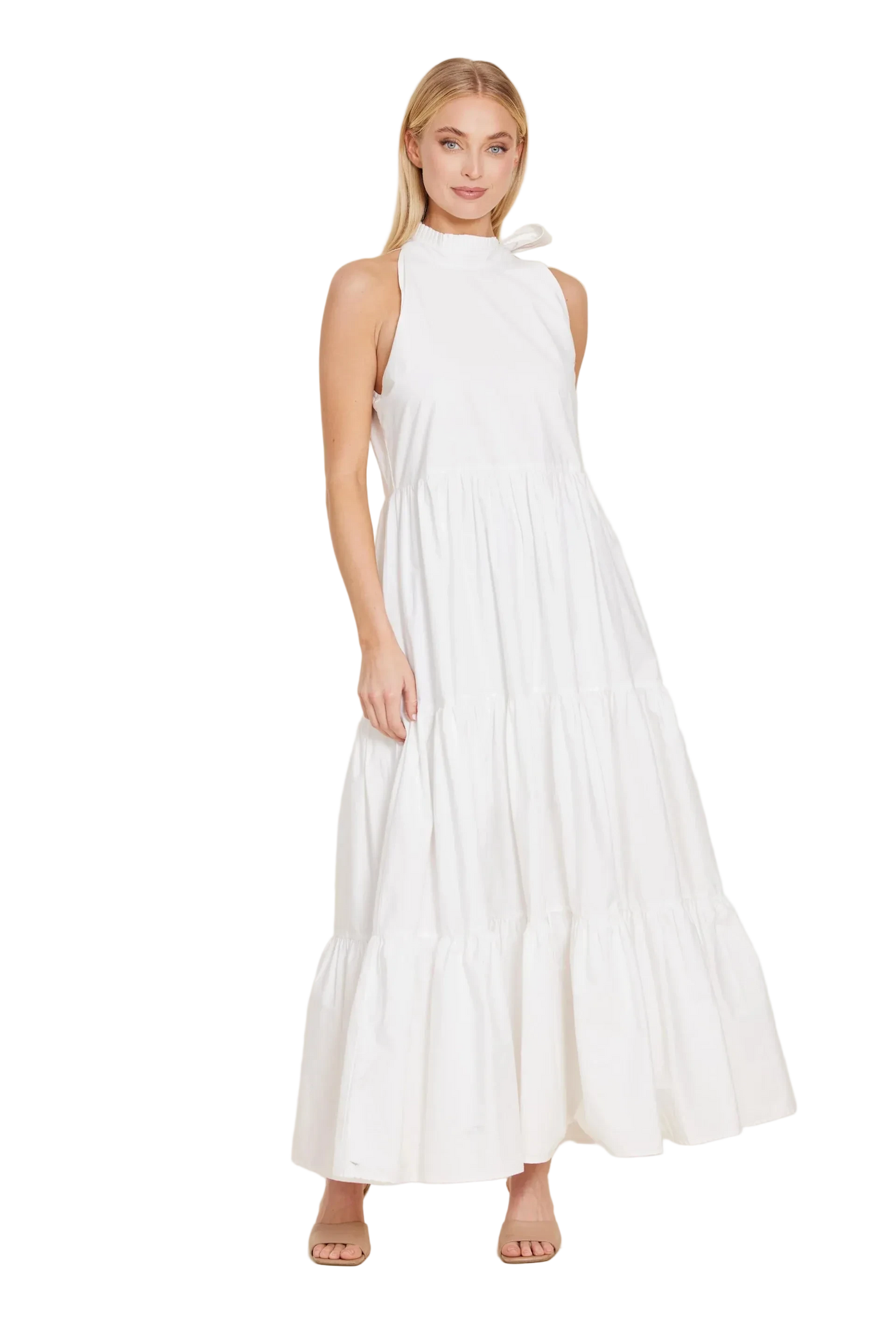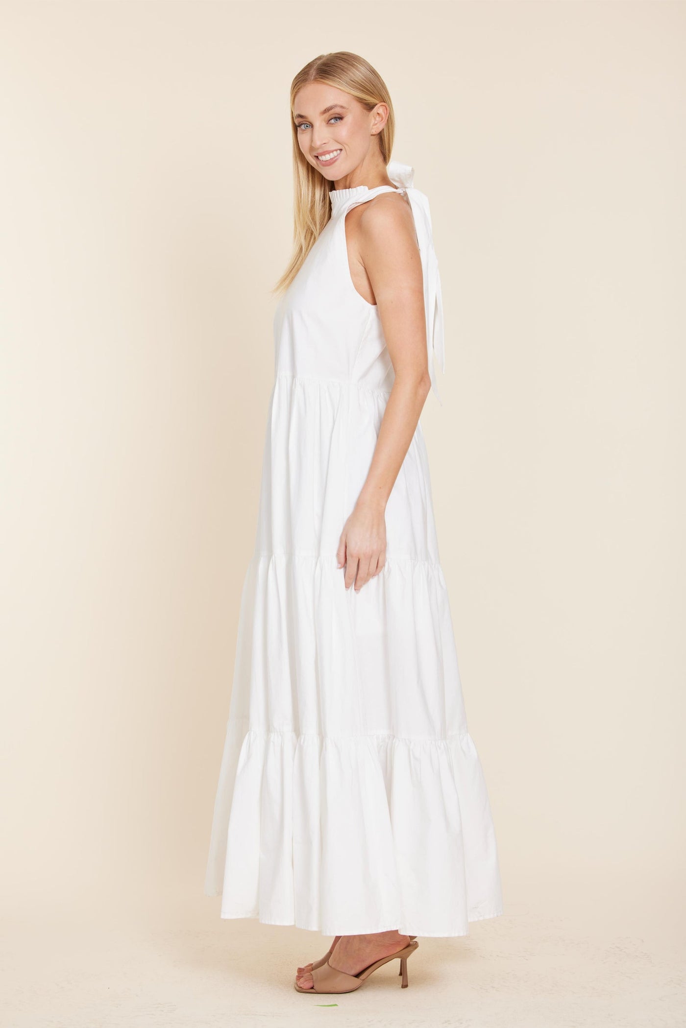 Dolce Cabo Poplin Tie Neck Tiered Maxi Dress - White