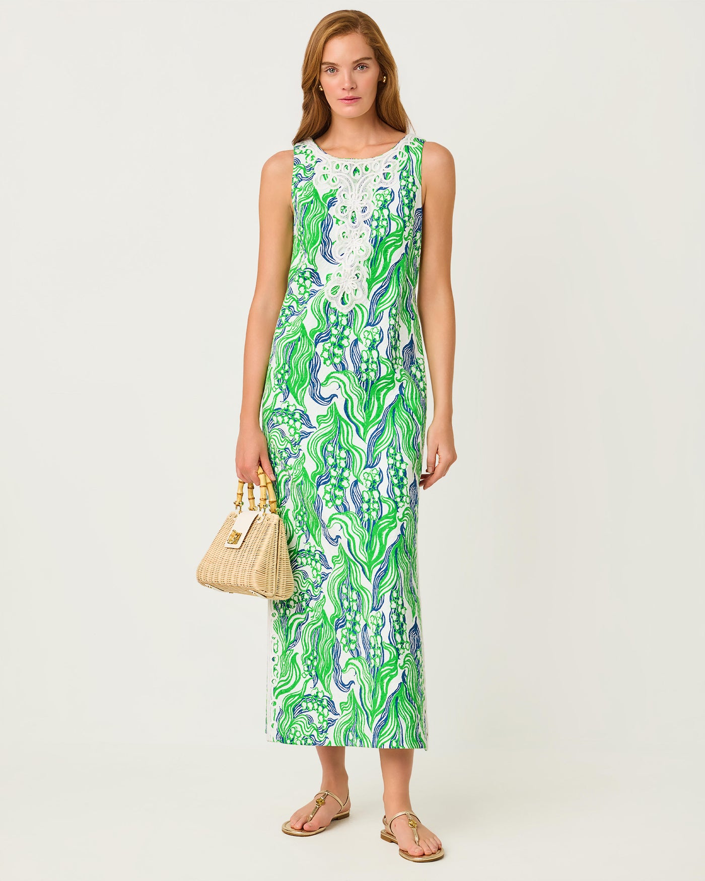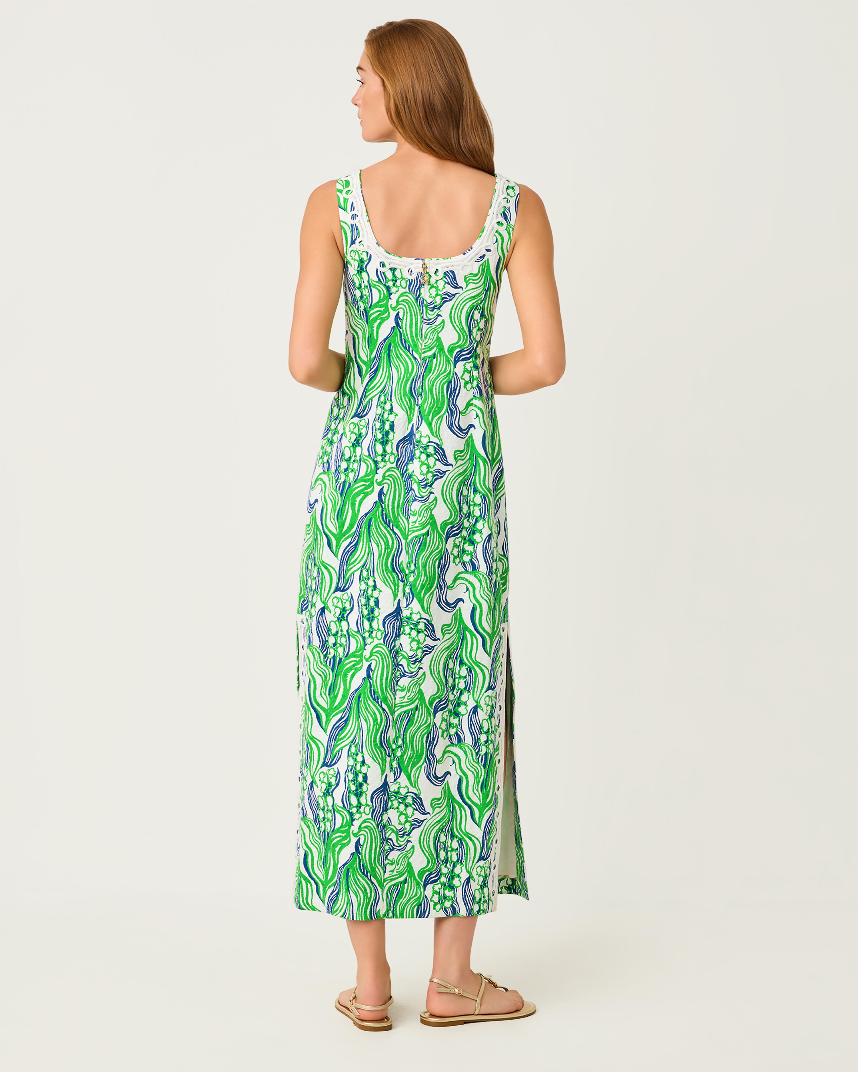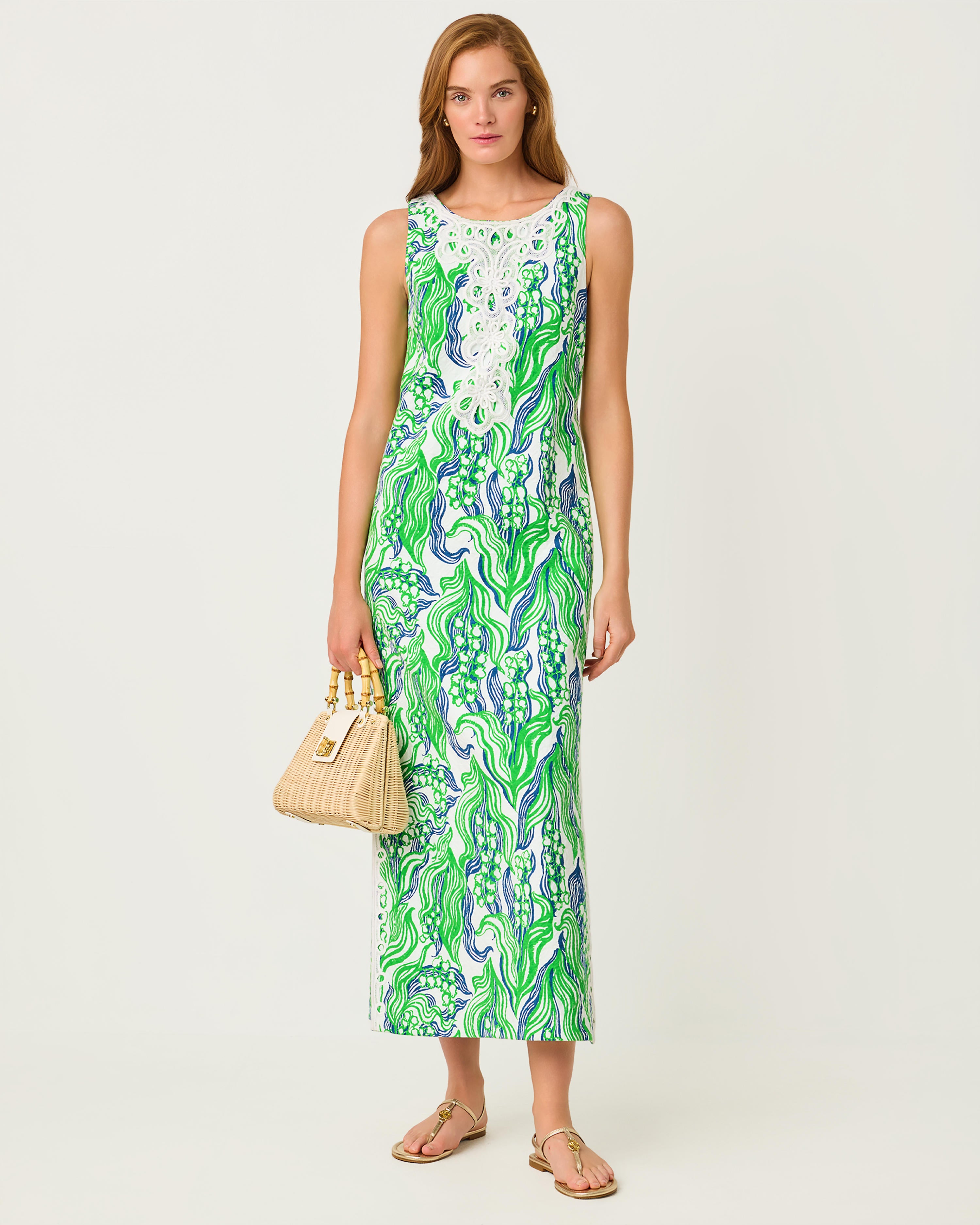 Lilly Pulitzer Marleigh Stretch Maxi Shift Dress - Putting Green Oversized Lilly Of The Valley