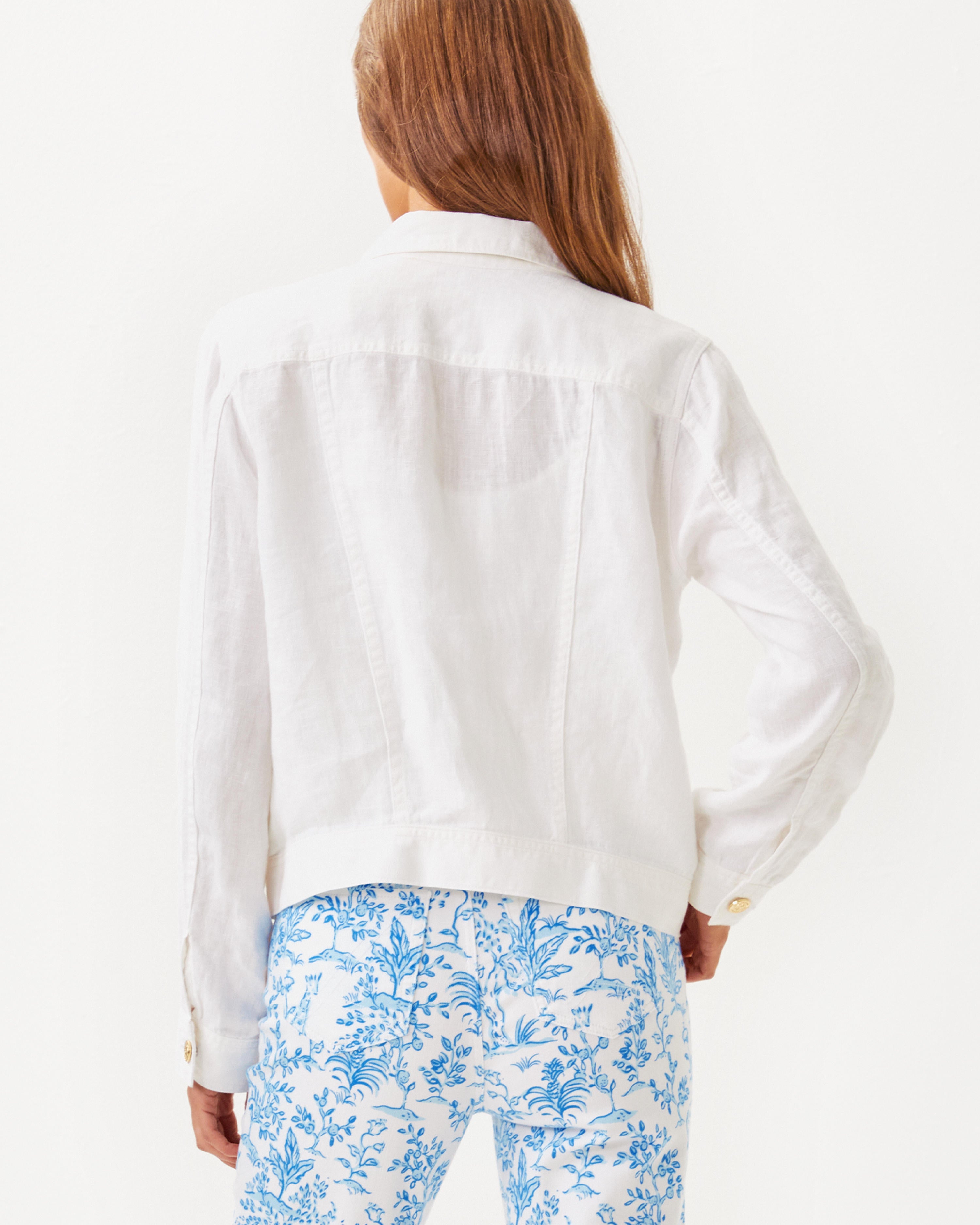 Throw on the Seaspray Linen Jacket over your favorite dress, top, or romper. Stash your essentials in the pockets and wear your favorite gold wedges to match the gold details. This lightweight linen jacket will be your go-to all season long.