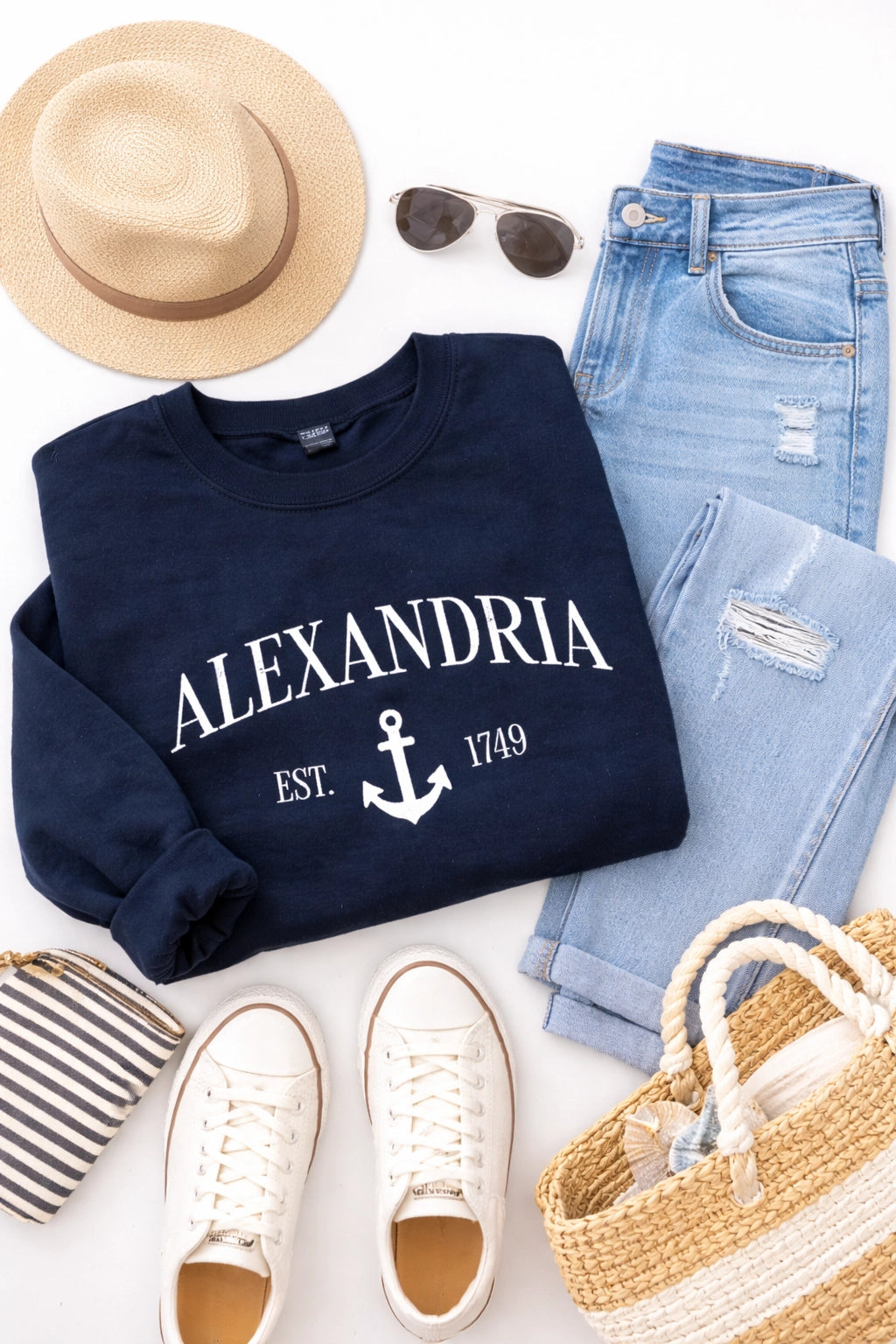 Alexandria Embroidered Anchor Sweatshirt - Navy