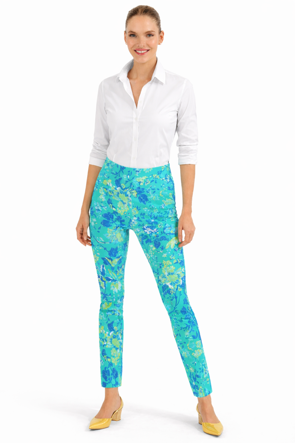 Gretchen Scott Gripeless Pull On Pant - English Garden - Turquoise