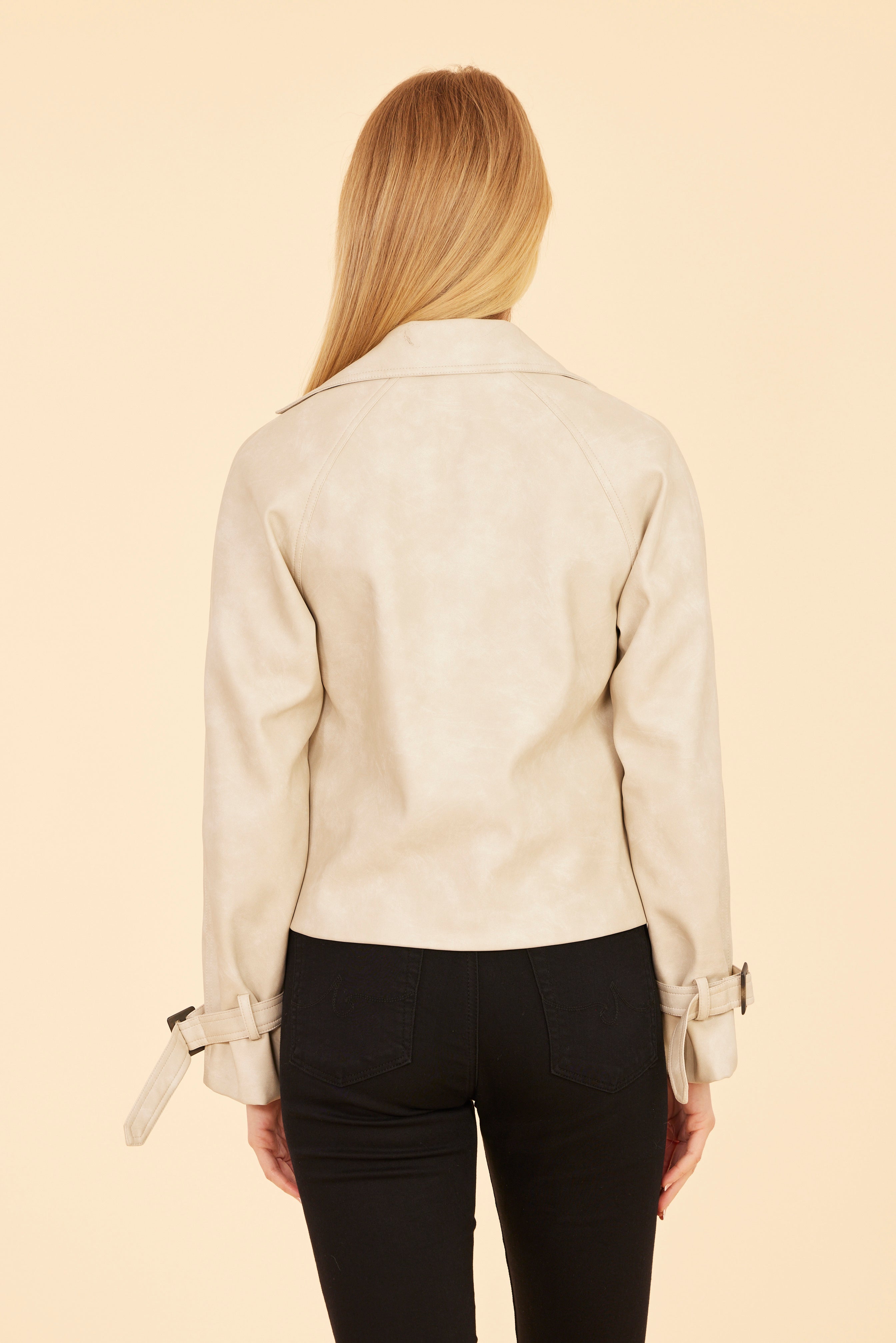 Dolce Cabo Vegan Leather Short Trench - Oatmeal