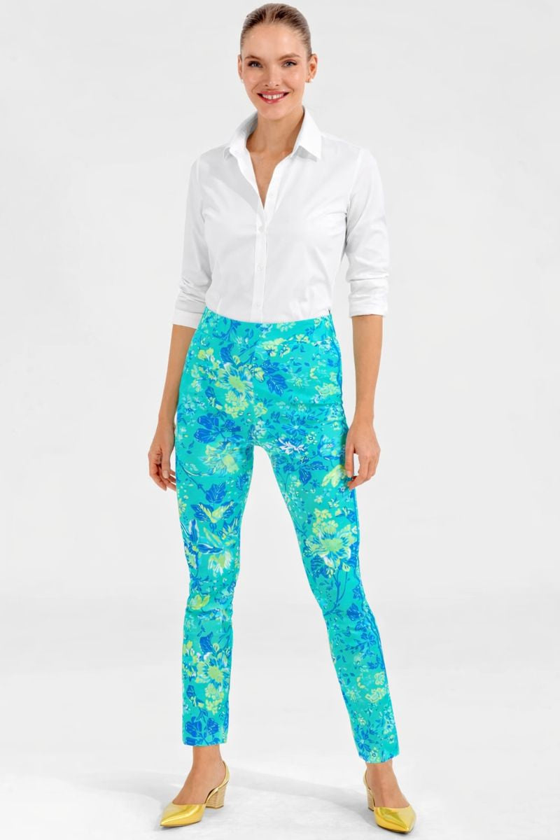 Gretchen Scott Gripeless Pull On Pant - English Garden - Turquoise