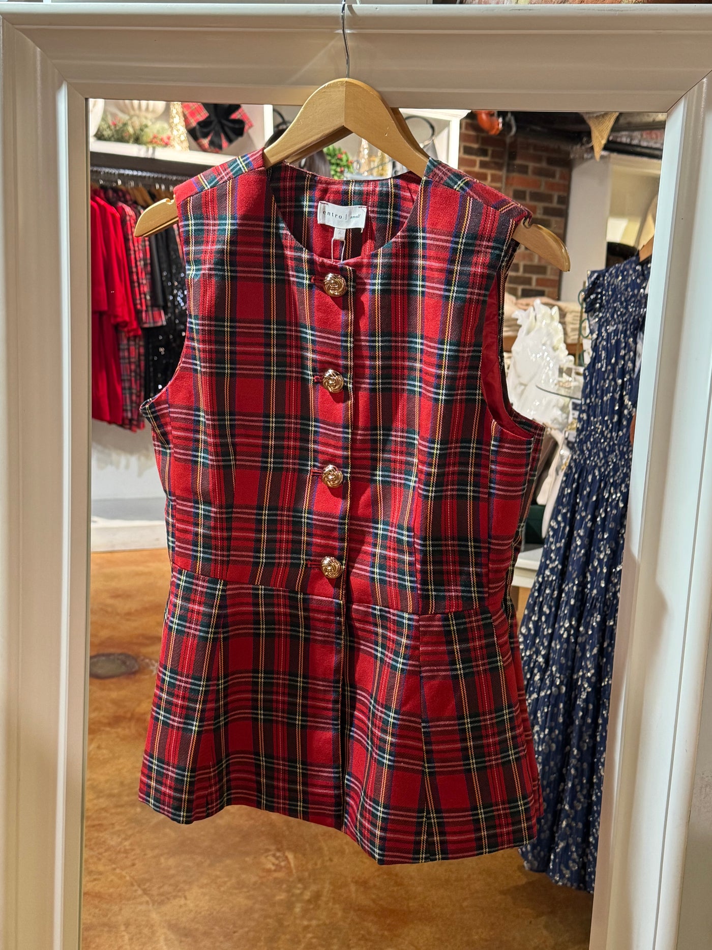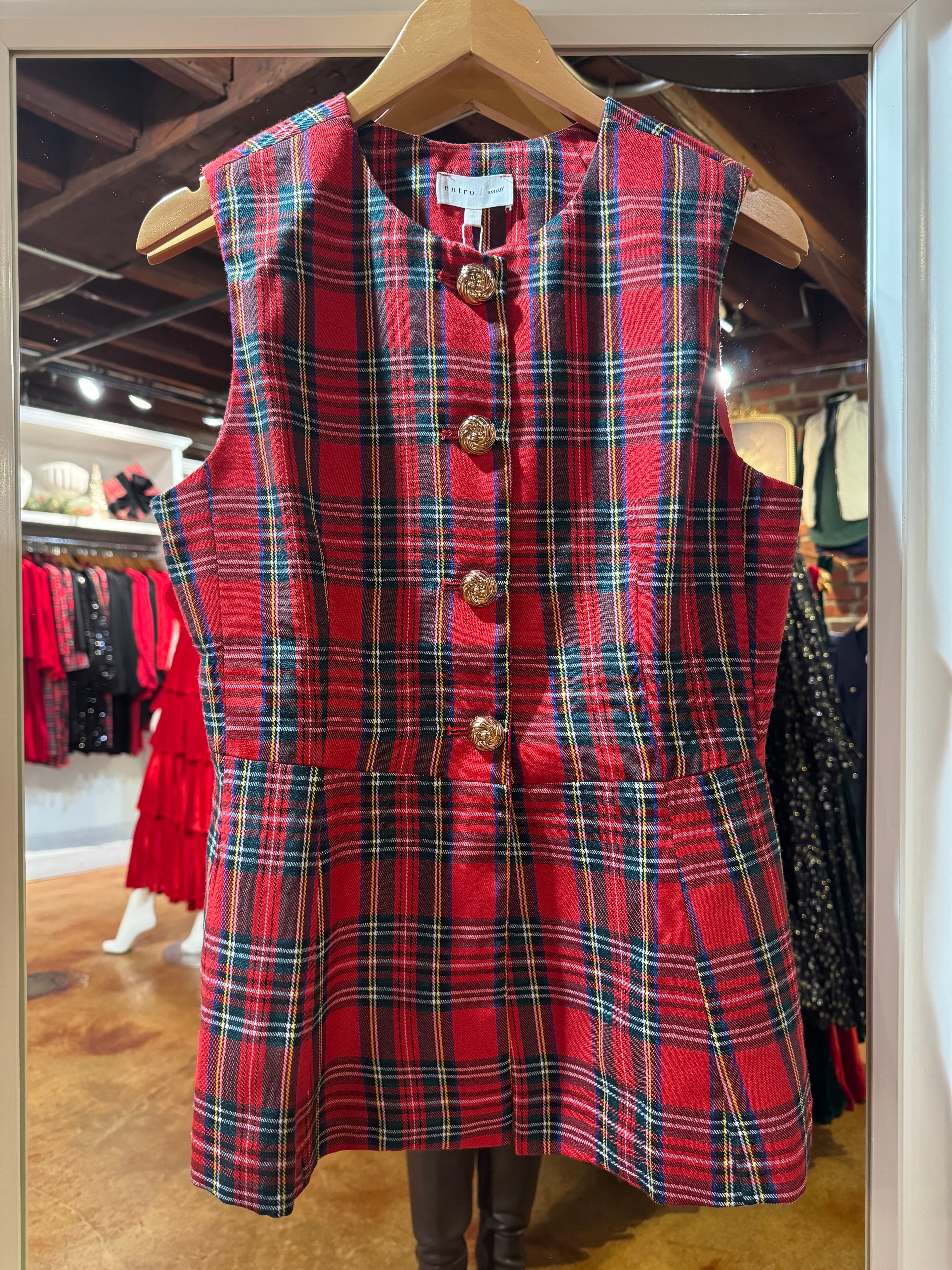 Entro Festive Glow Plaid Top - Red