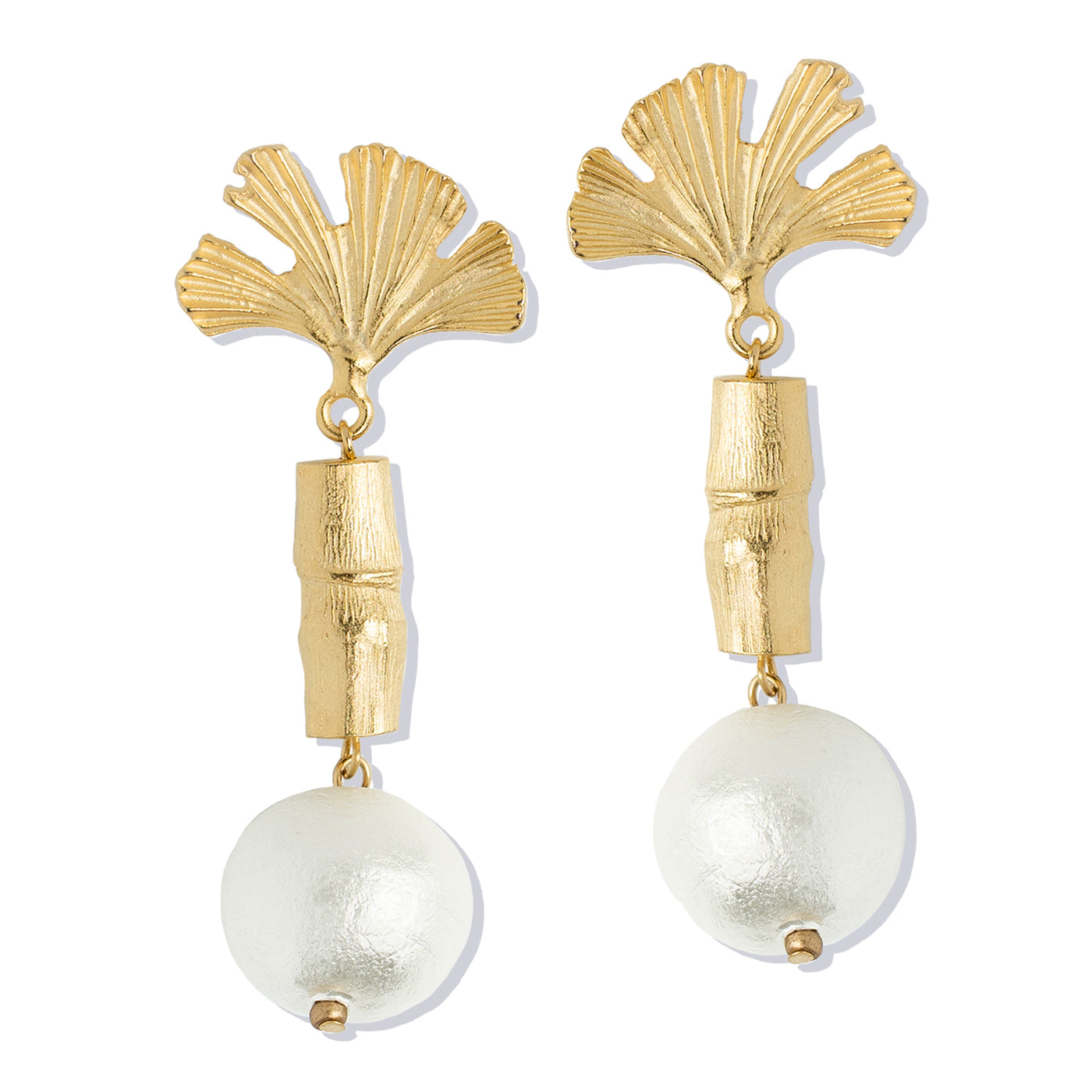 Susan Shaw Pearl Ginkgo + Bamboo Earrings